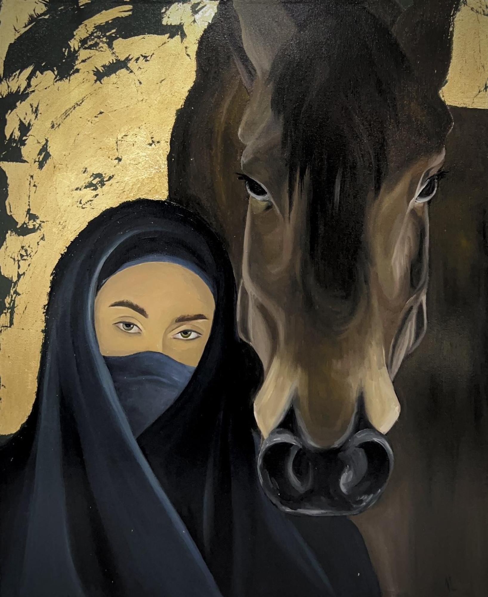 Картина о девушке, сбежавшей от своей семьи, из-за предстоящей свадьбы с нелюбимым. Взгляд передает решительность и твердость характера беглянки. Но то, что она все еще покрыта, говорит об уважении к ее культуре и законам божьим. Автор призывает любить и уважать себя, но не забывать о культуре и морали.