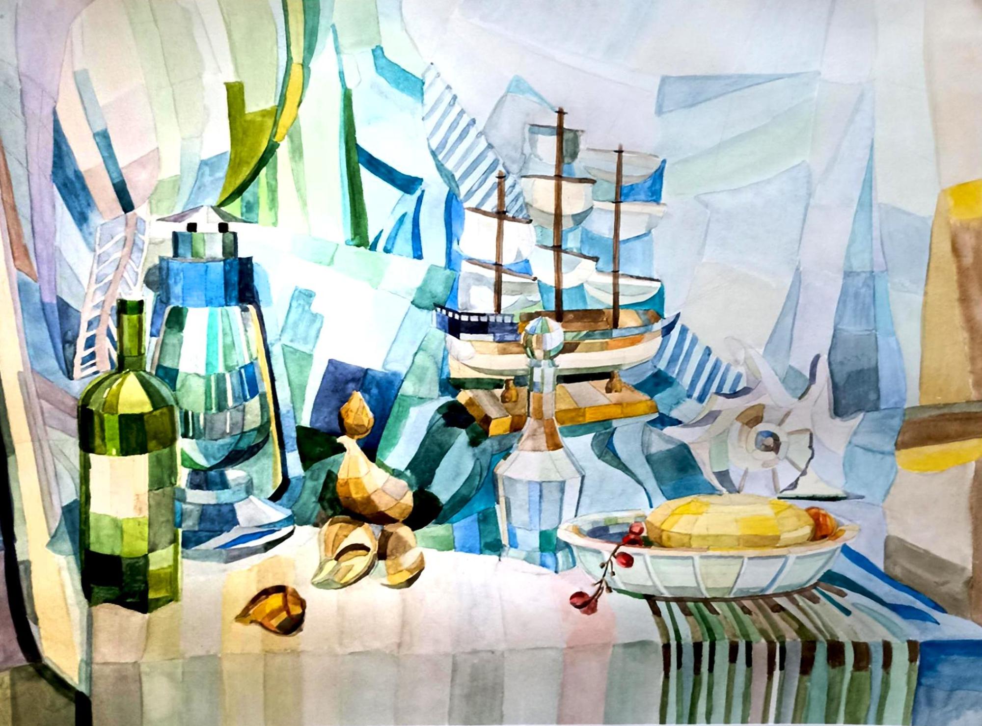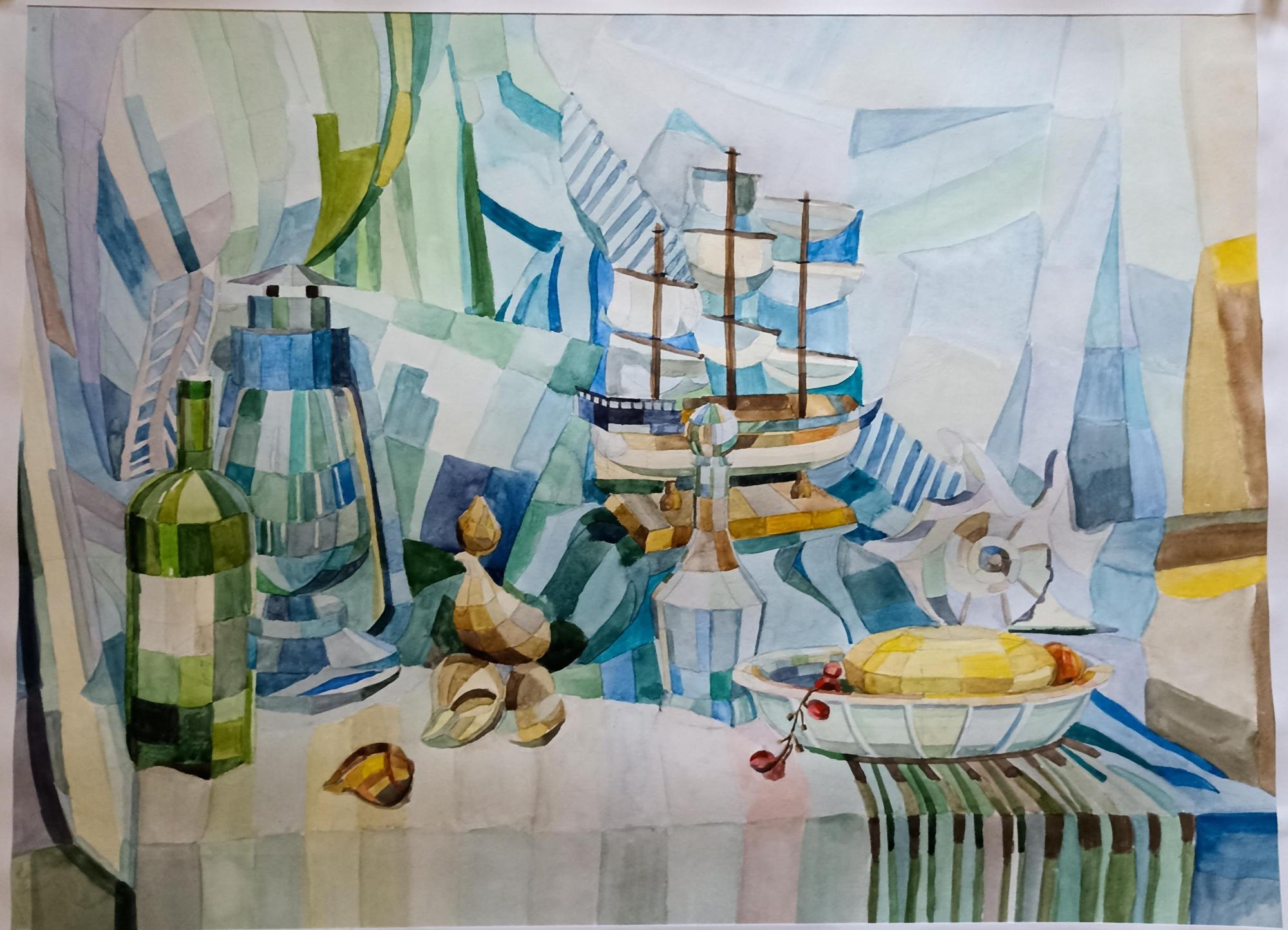 Это моя первая работа в декоративном стиле-настоящий вызов для меня) Целый месяц я осваивала новый язык: вместо привычного реализма и объёма училась говорить плоскостями и пятнами цвета. Было непросто, но в итоге имеем ценный опыт и непередаваемые чувства.Я влюбилась в результат.