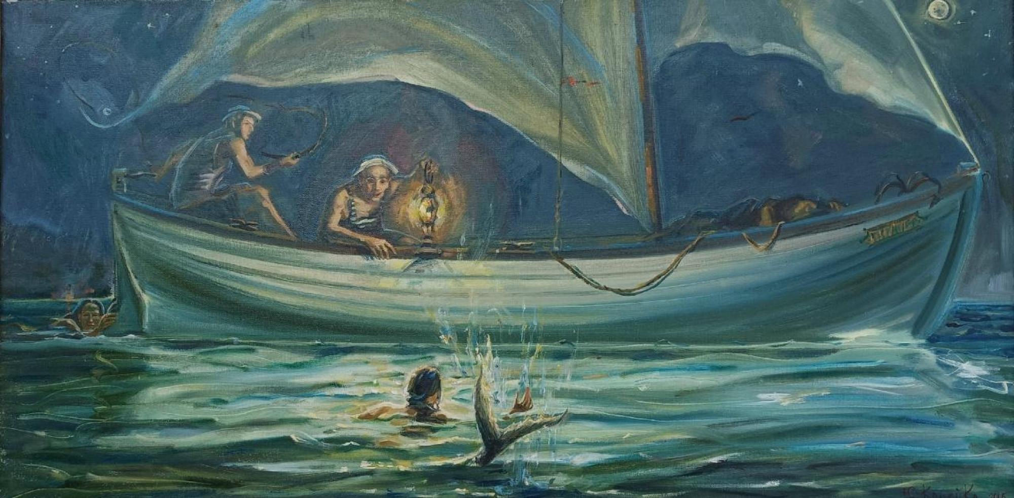 Произведение написано в фантастическом сказачном жанре. Ночь, тишина, морская гладь. Удивительное зрелище разворачивается прямо перед зрителем. Из глубин морских поднимаются прекрасные существа — русалки. Моряки, сидящие на палубе корабля, замерли в восхищении. Один смотрит на русалку с восторгом и любопытством, другой — с осторожностью и недоверием. Кто знает, что эти морские девы задумали?