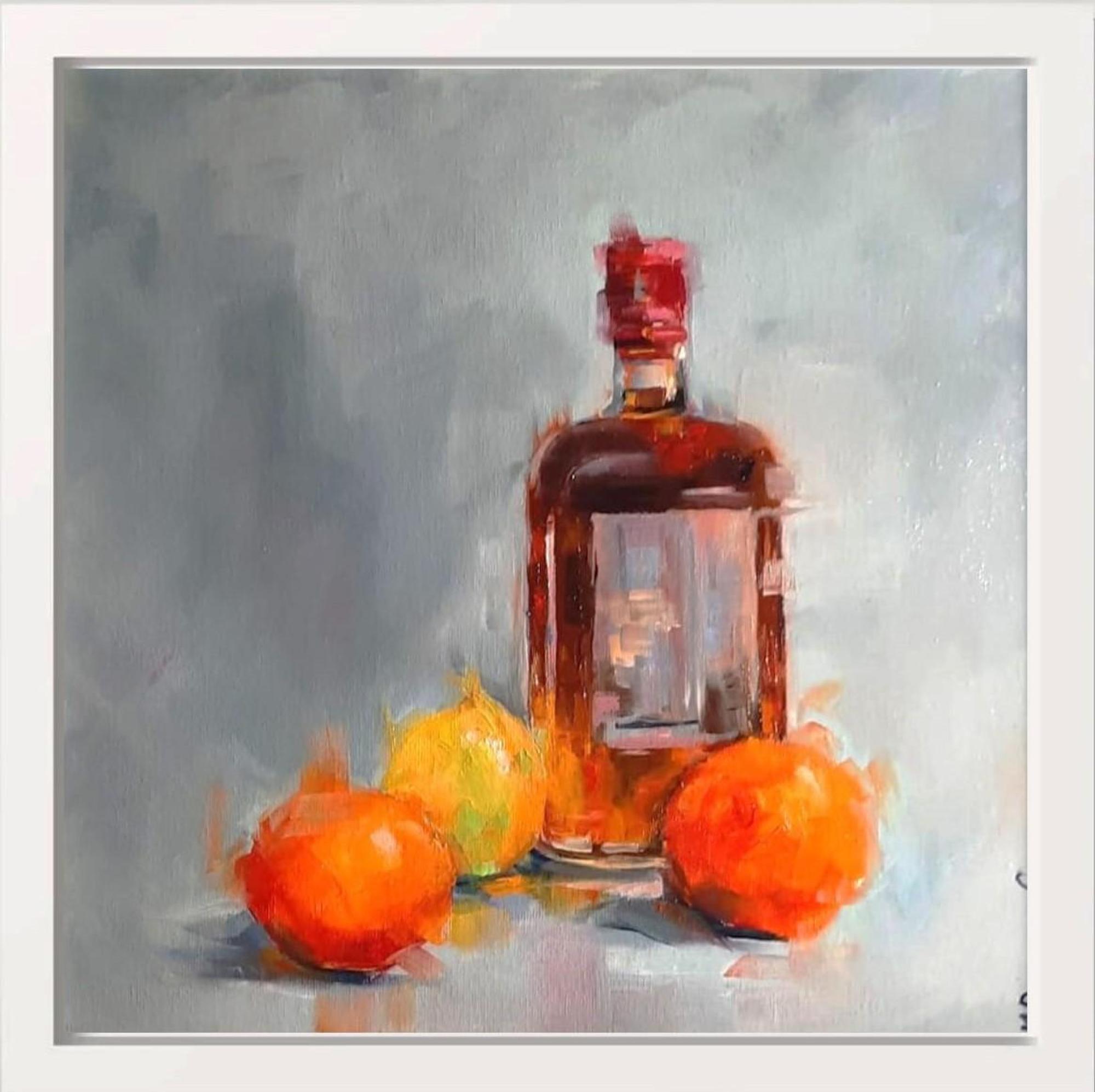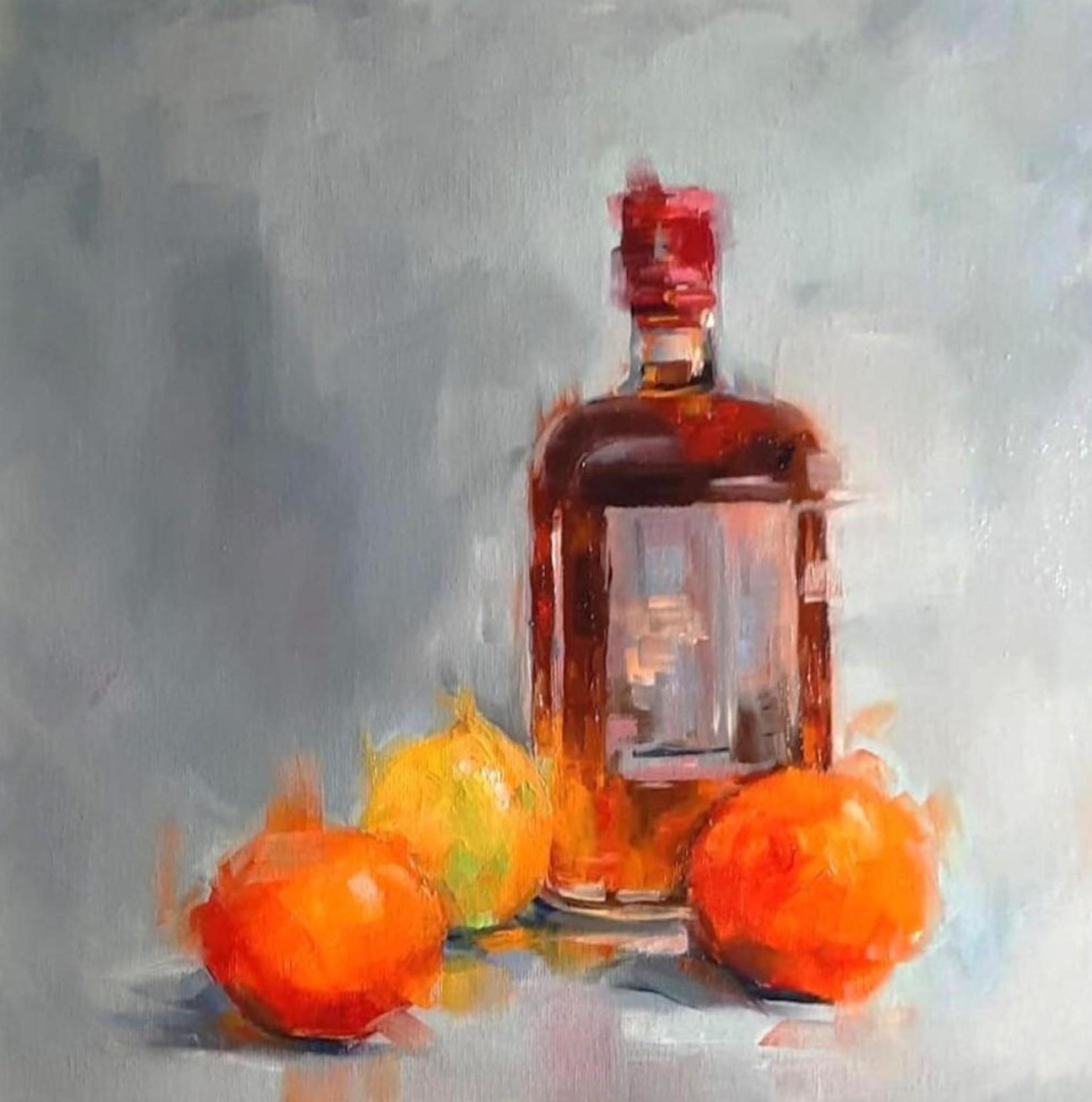 Натюрморт, импрессионизм, виски, лимон, апельсины