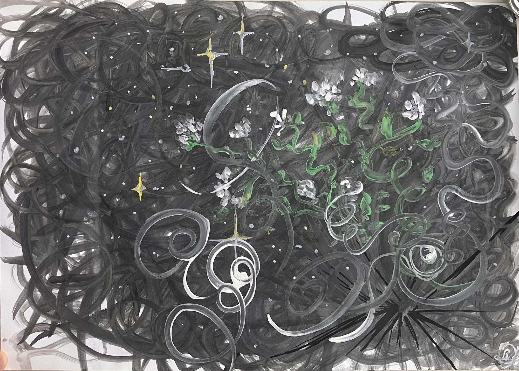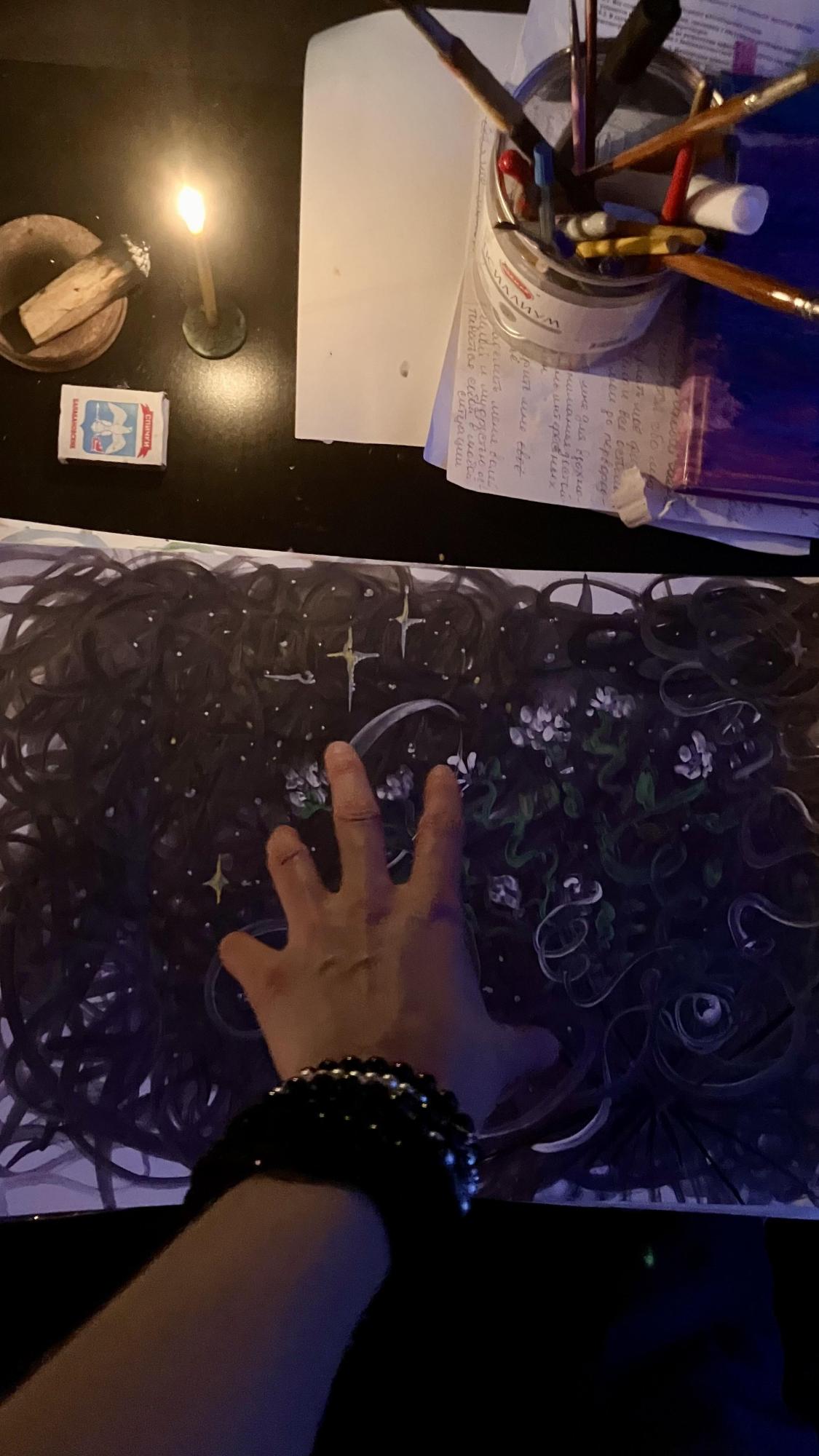 Картина о том, что внутри каждого человека есть дыра размером с Бога. И там в этой черной дыре - тонкость и изящество, глубина, мистика, динамика, светлая грусть и красота хаоса✨