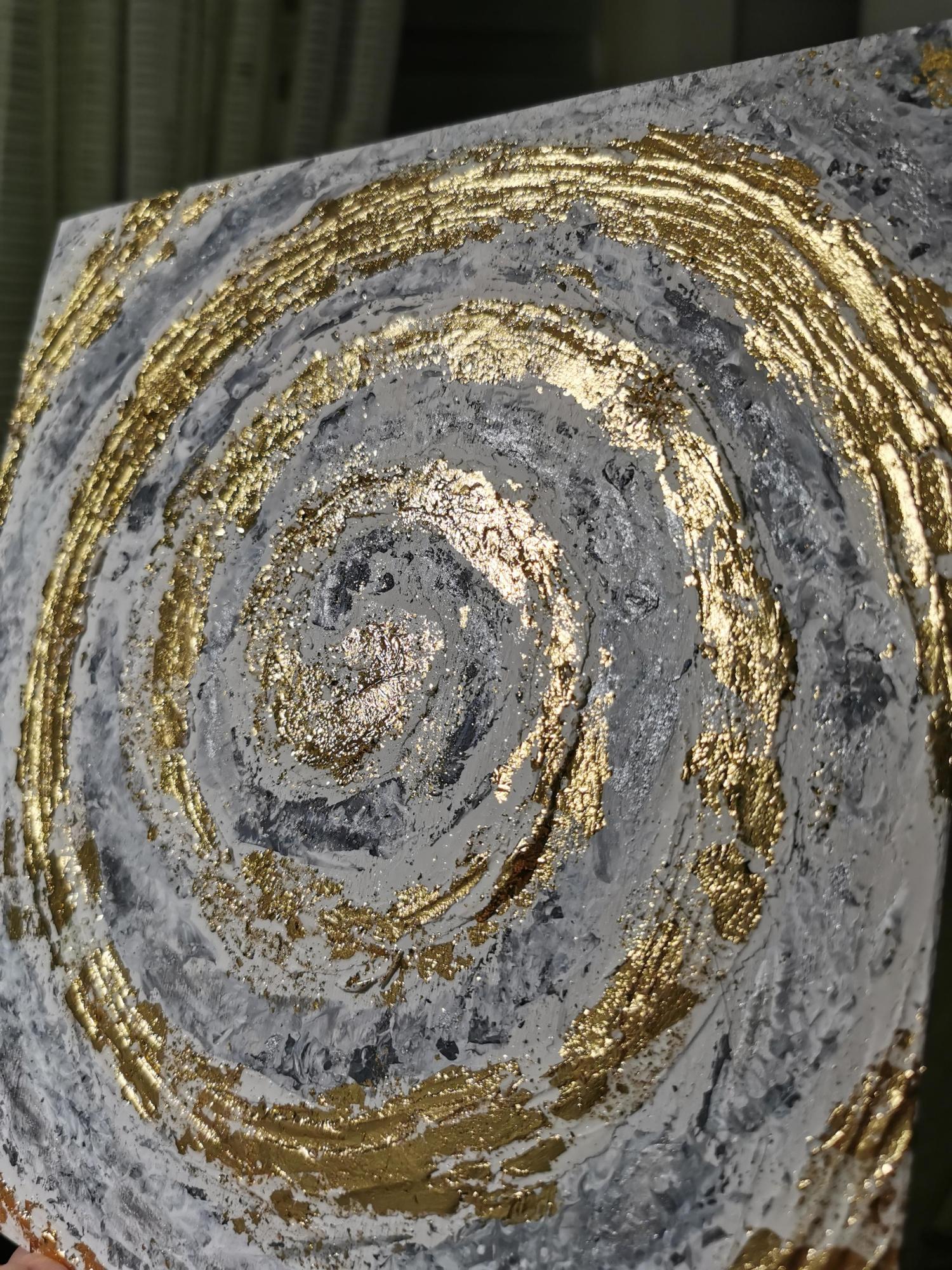 Работа выполнена из структурной декоративной штукатурке с элементами потали и перламутра разных оттенков.