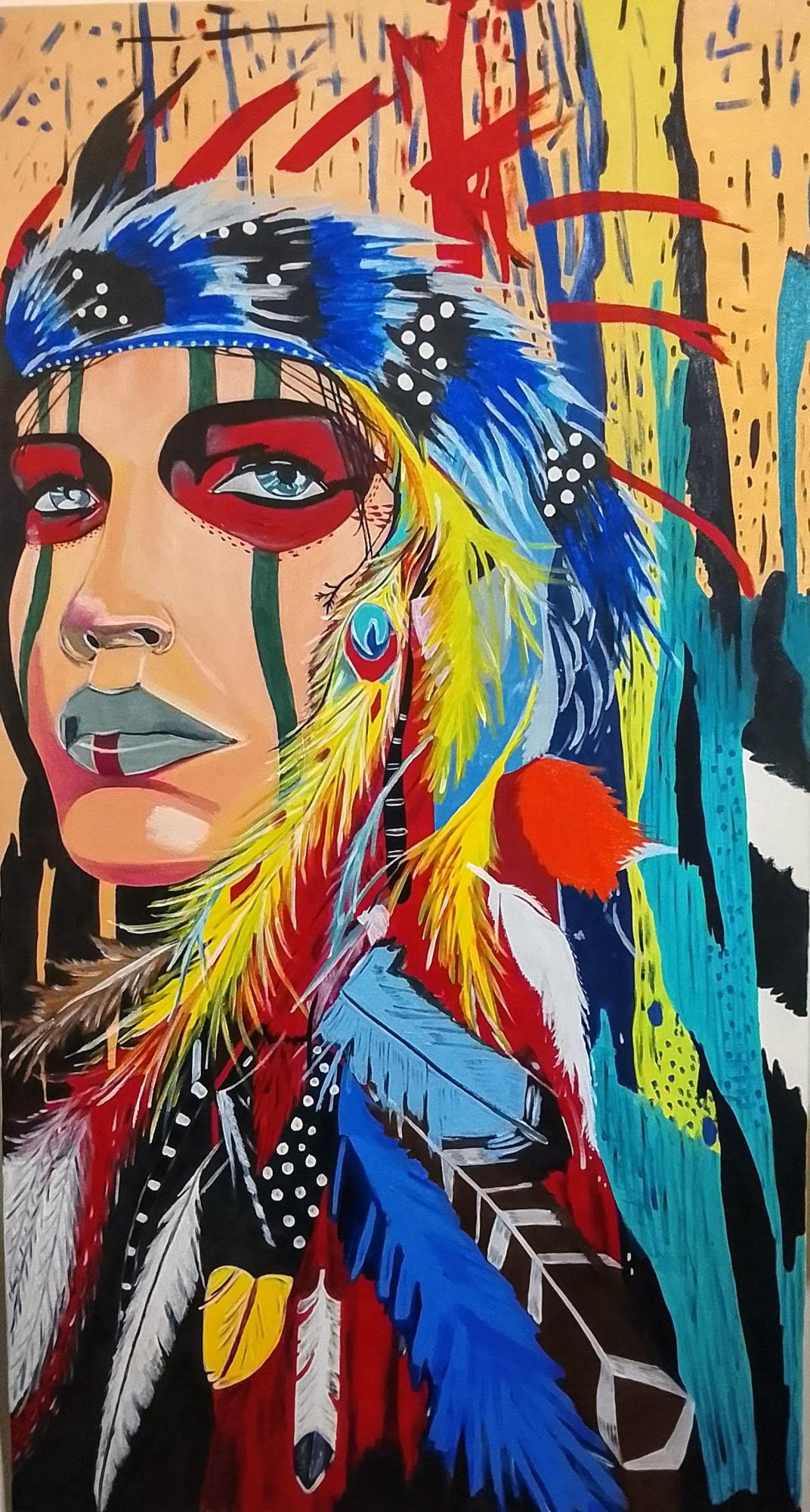 Дух забытых троп.Она была воспоминанием застрявшим между мирами.Контуры её тела дрожали, как воздух над раскалёнными скалами, а в место сердца в груди тихо пульсировал свет светлечка.Перья в её волосах были не украшением,а знаками племей, ушедших в небытие, она не смотрела -она видела сквозь, и от этого взгляда по спине не холод, а странное узнавание будто ты сам-всего лишь мимолётных сон на её вечном бесшумном пути.Дух-это сущность, идея, воспоминание или природная сила, принявшая облик,Описываете её как нечто, нарушающее законы физики и воздействующее напрямую на душу и чувства зрителя.