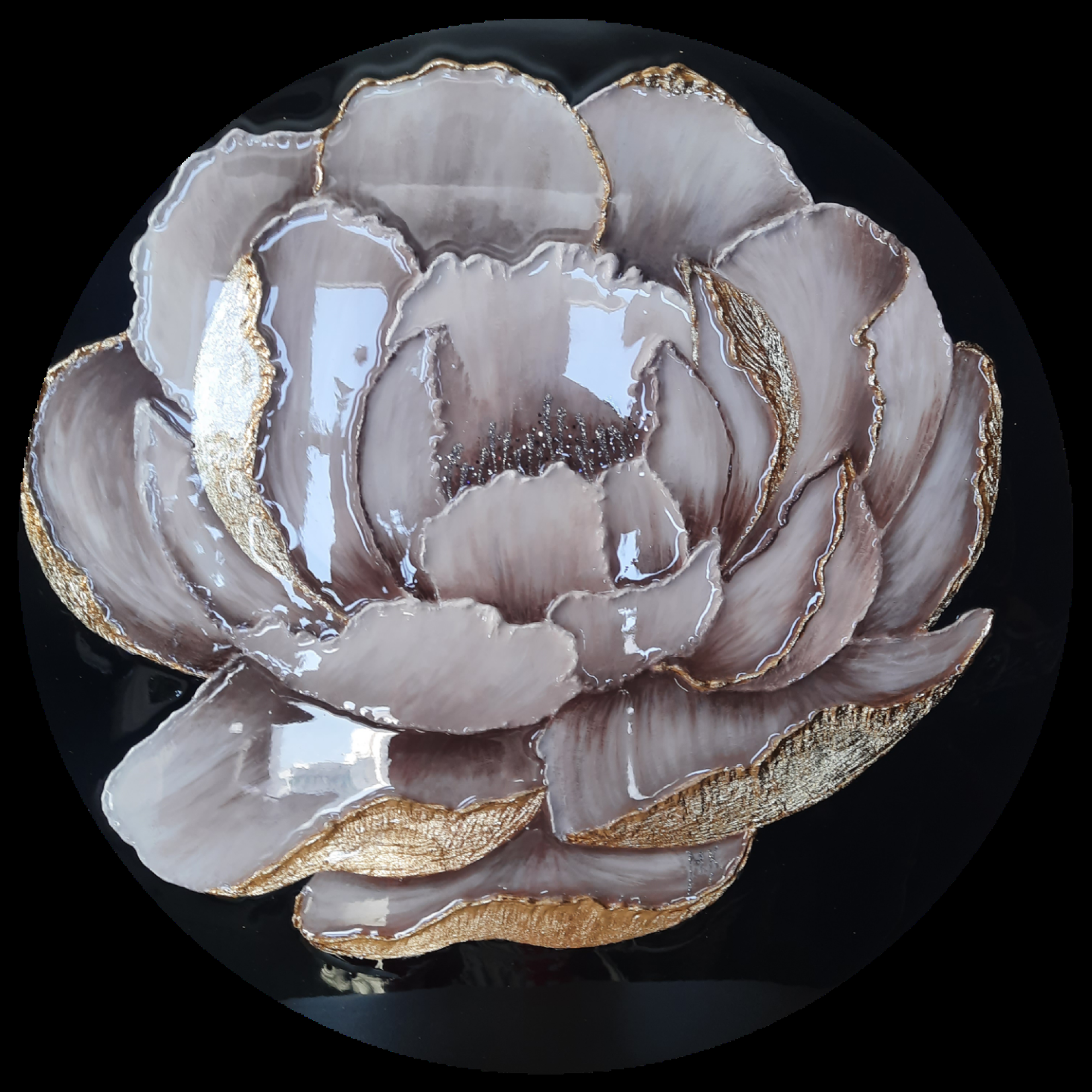 Элитная ручная работа. Выполнена акриловыми красками в технике 3d заливки эпоксидной смолой. Глубокий черный фон выгодно оттеняет нежные пастельные тона пышного пиона. Золотая поталь красиво подчёркивает воздушные лепестки,создавая солнечное мерцание. Текстурная паста позволяет насладиться натуралистичностью цветка. Роскошные стразы создают сказочную глубину и радужное сияние в сердце пиона. Символизирует красоту природы и её гармонию. Выполнена на артборде. Идеально подойдет для интерьера в стиле ар-деко или модерн. Прекрасно подчеркнет богатство и особенность Вашего интерьера.